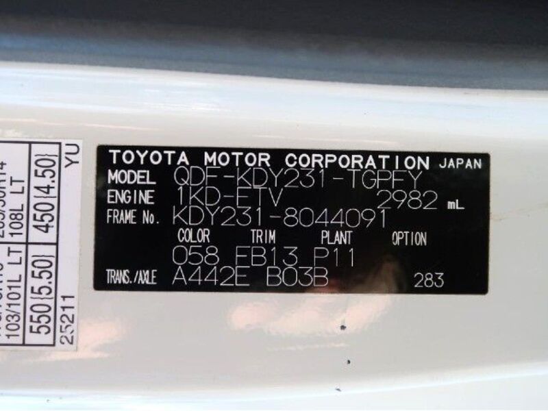 | Chassis No | KDY231-****Full Chassis No_will be shown on Invoice |