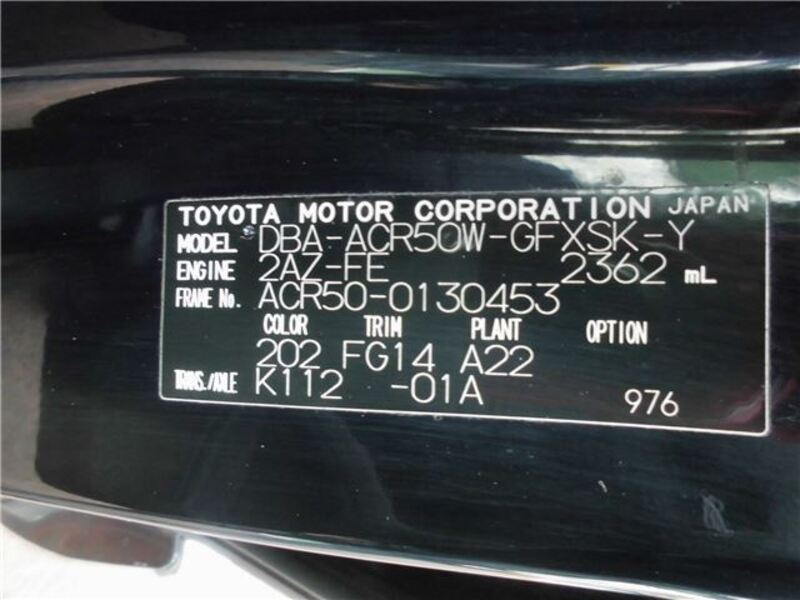 | Chassis No | ACR50W-****Full Chassis No_will be shown on Invoice |