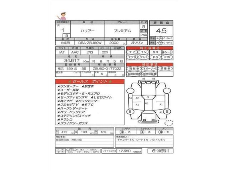 hii TOYOTA HARRIER na nambari ya mfano ZSU60W imewekwa na injini ya Petroli 2,000cc na ina jumla ya mileage ya 34,617km.