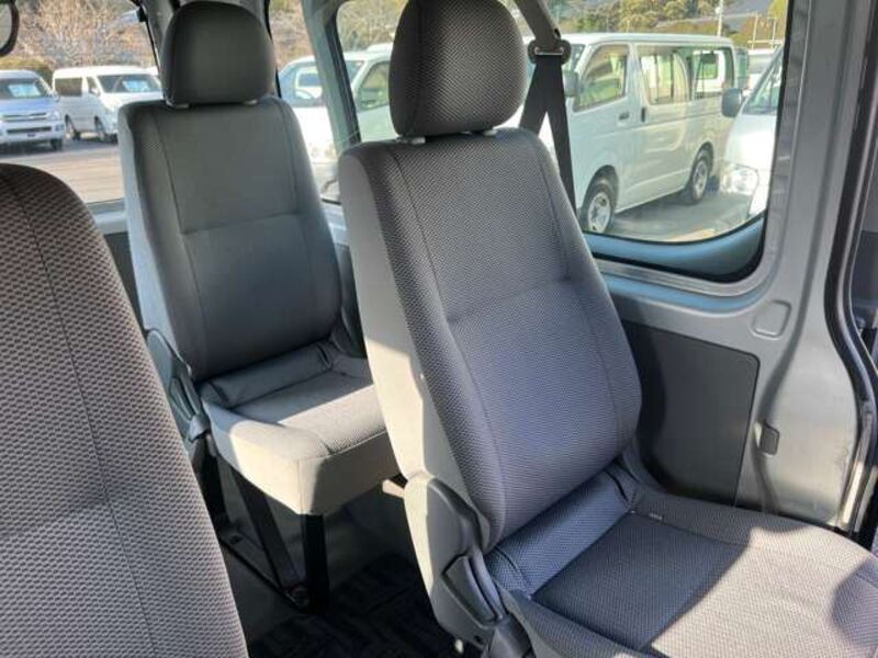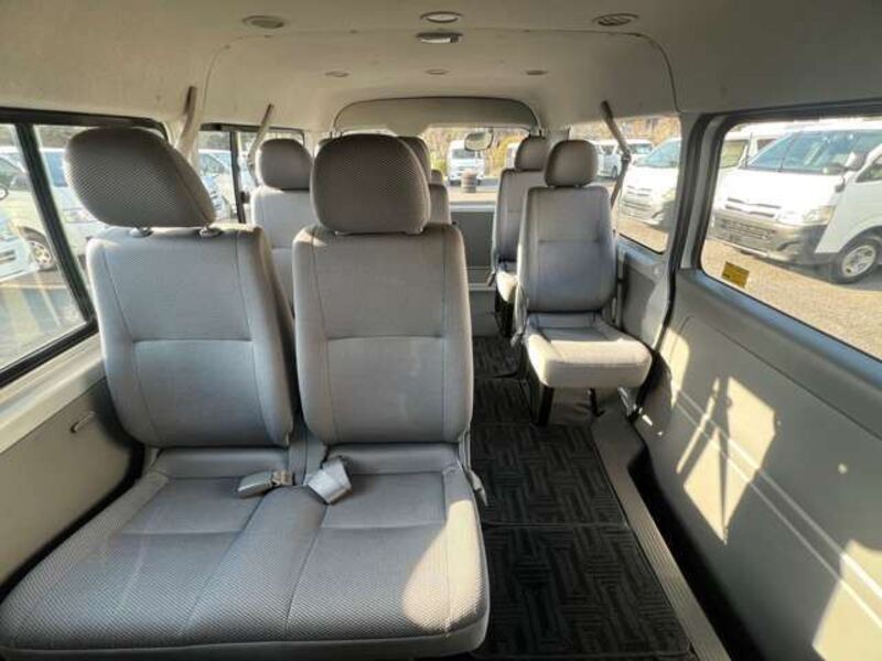 This is a 10-seat Toyota van that is perfect for trips and picking up or dropping off a large number of people. The line of sight has been raised to offer a clear view and provide comfort on long journeys. The interior window areas are also large to provide a sense of openness. The height of the interior makes it easy to get in and out of the vehicle, even to and from the last row of seats. Has a spacious luggage area owing to its seats that can be raised.