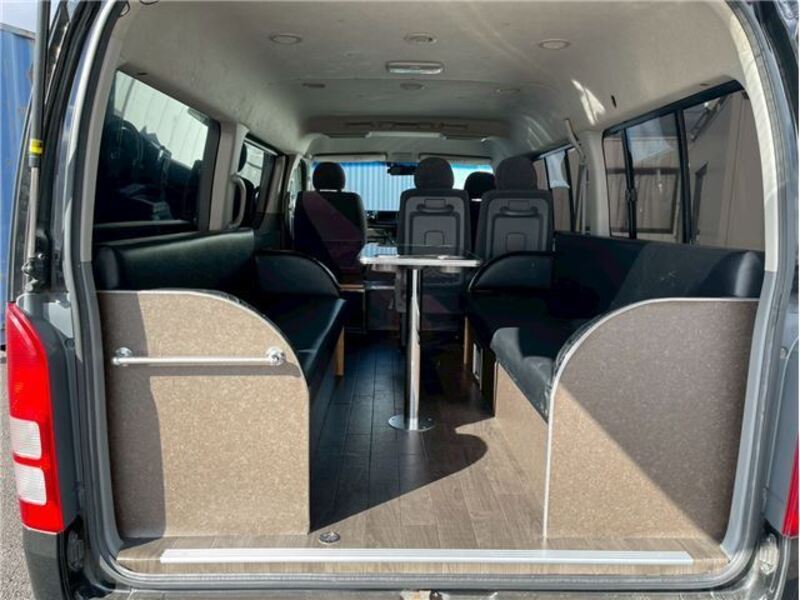 This is a 10-seat Toyota van that is perfect for trips and picking up or dropping off a large number of people. The line of sight has been raised to offer a clear view and provide comfort on long journeys. The interior window areas are also large to provide a sense of openness. The height of the interior makes it easy to get in and out of the vehicle, even to and from the last row of seats. Has a spacious luggage area owing to its seats that can be raised.