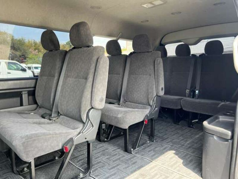 This is a 10-seat Toyota van that is perfect for trips and picking up or dropping off a large number of people. The line of sight has been raised to offer a clear view and provide comfort on long journeys. The interior window areas are also large to provide a sense of openness. The height of the interior makes it easy to get in and out of the vehicle, even to and from the last row of seats. Has a spacious luggage area owing to its seats that can be raised.