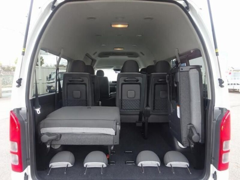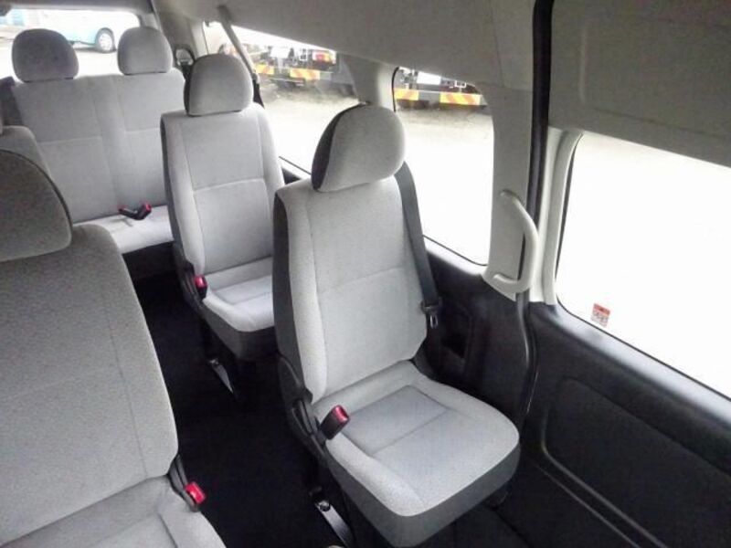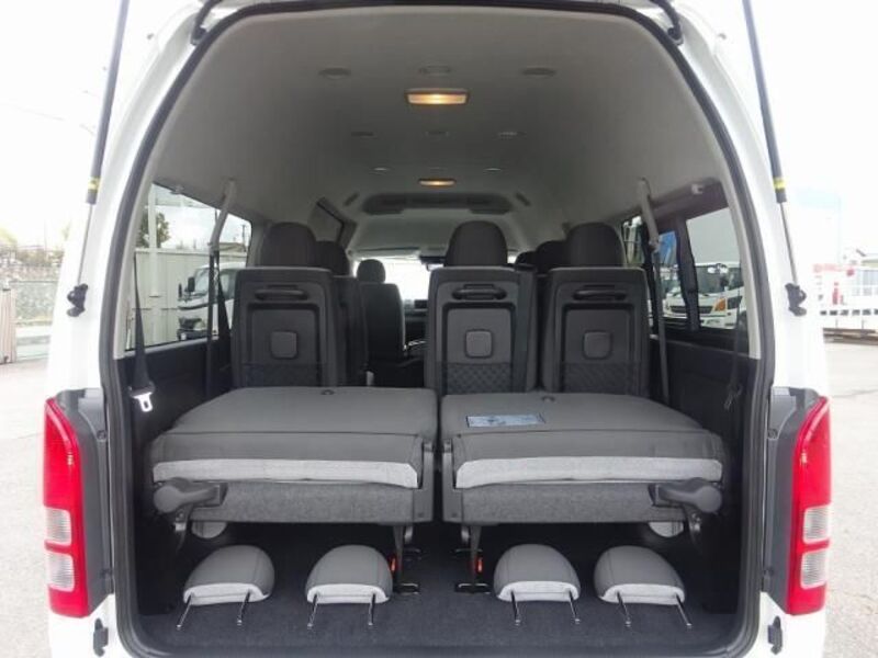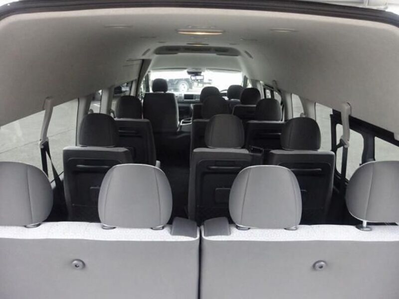 This is a 10-seat Toyota van that is perfect for trips and picking up or dropping off a large number of people. The line of sight has been raised to offer a clear view and provide comfort on long journeys. The interior window areas are also large to provide a sense of openness. The height of the interior makes it easy to get in and out of the vehicle, even to and from the last row of seats. Has a spacious luggage area owing to its seats that can be raised.