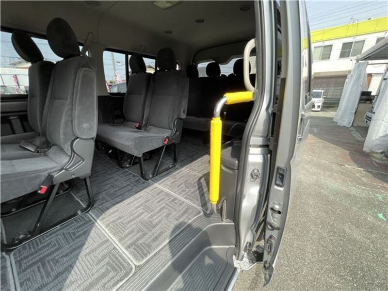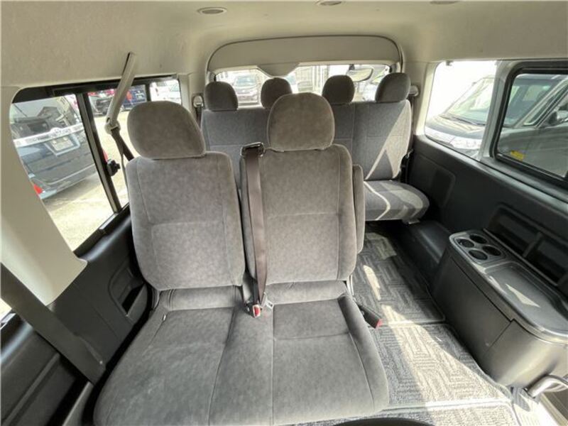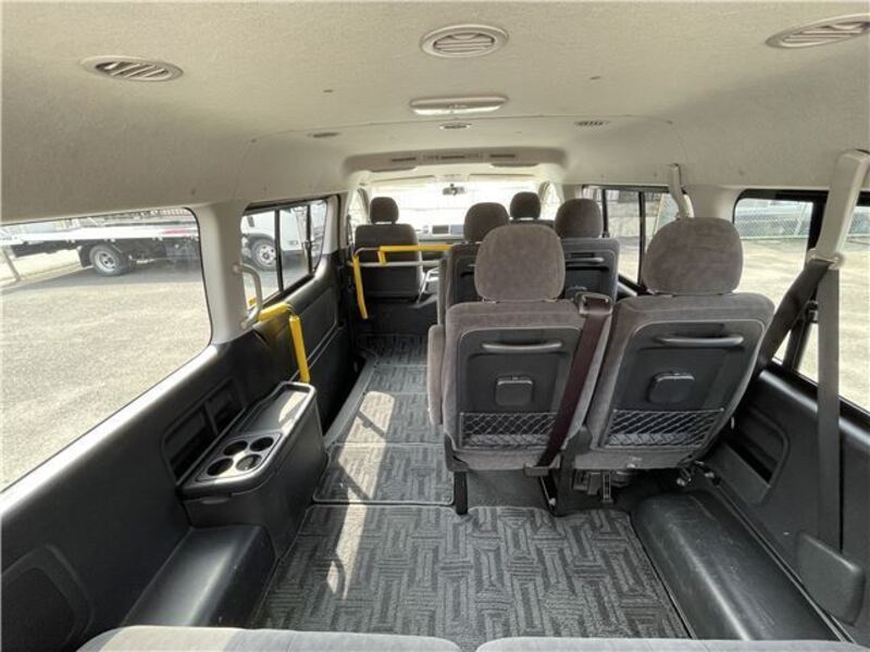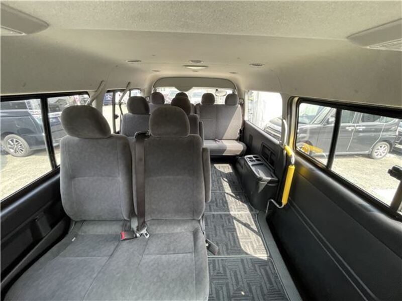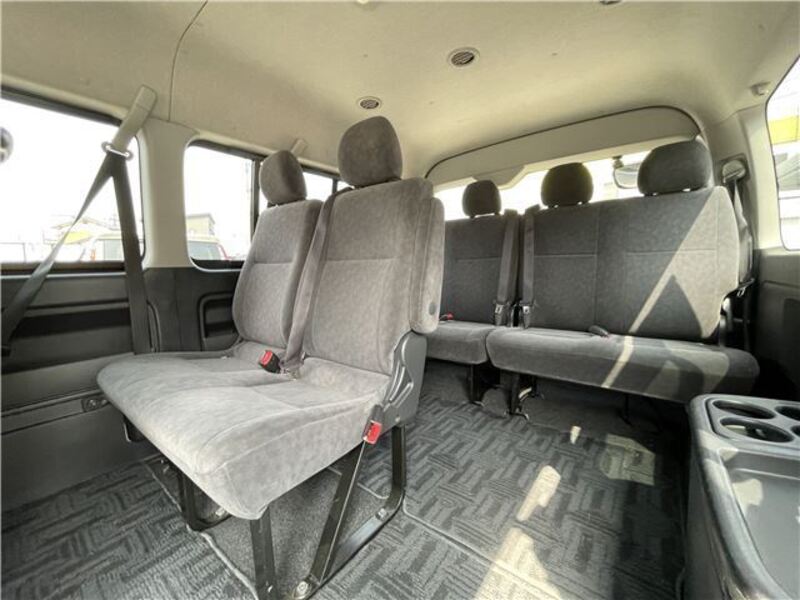 This is a 10-seat Toyota van that is perfect for trips and picking up or dropping off a large number of people. The line of sight has been raised to offer a clear view and provide comfort on long journeys. The interior window areas are also large to provide a sense of openness. The height of the interior makes it easy to get in and out of the vehicle, even to and from the last row of seats. Has a spacious luggage area owing to its seats that can be raised.