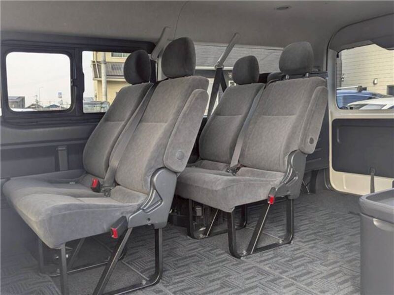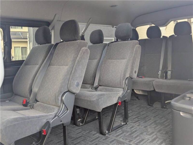This is a 10-seat Toyota van that is perfect for trips and picking up or dropping off a large number of people. The line of sight has been raised to offer a clear view and provide comfort on long journeys. The interior window areas are also large to provide a sense of openness. The height of the interior makes it easy to get in and out of the vehicle, even to and from the last row of seats. Has a spacious luggage area owing to its seats that can be raised.