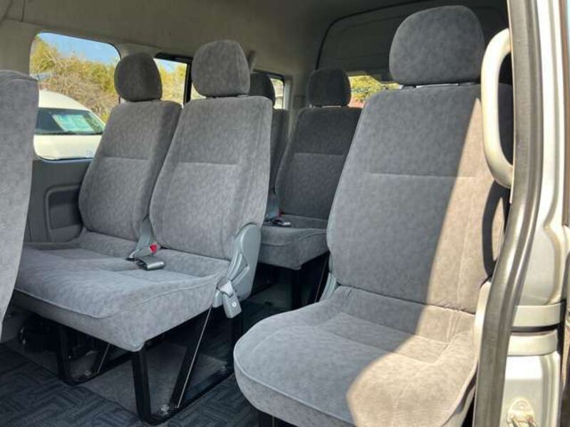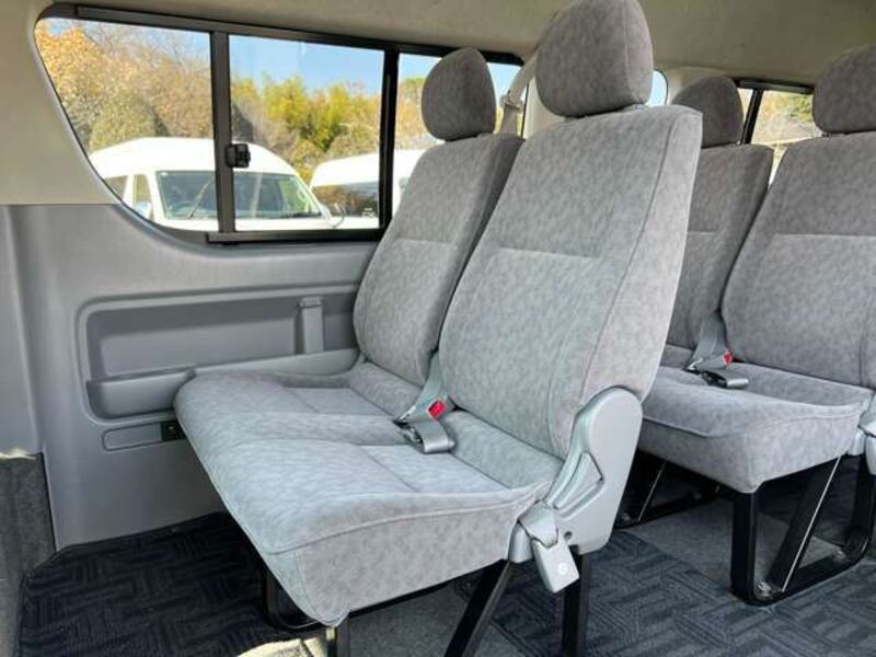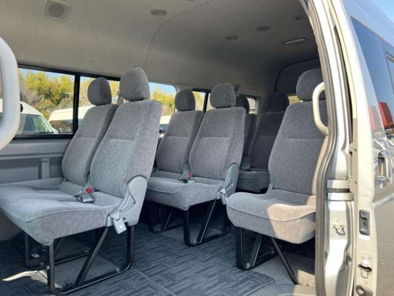 This is a 10-seat Toyota van that is perfect for trips and picking up or dropping off a large number of people. The line of sight has been raised to offer a clear view and provide comfort on long journeys. The interior window areas are also large to provide a sense of openness. The height of the interior makes it easy to get in and out of the vehicle, even to and from the last row of seats. Has a spacious luggage area owing to its seats that can be raised.