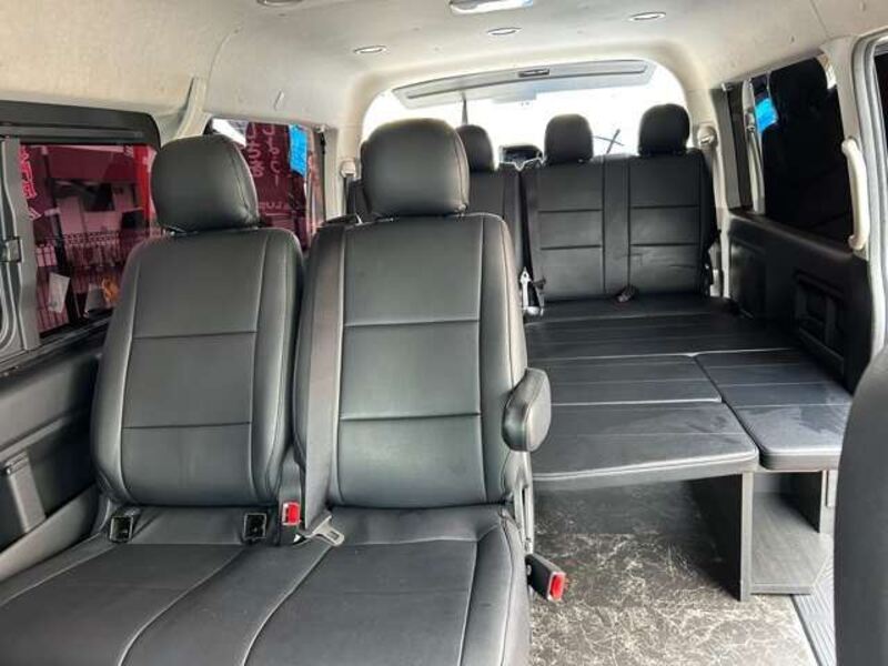 This is a 10-seat Toyota van that is perfect for trips and picking up or dropping off a large number of people. The line of sight has been raised to offer a clear view and provide comfort on long journeys. The interior window areas are also large to provide a sense of openness. The height of the interior makes it easy to get in and out of the vehicle, even to and from the last row of seats. Has a spacious luggage area owing to its seats that can be raised.