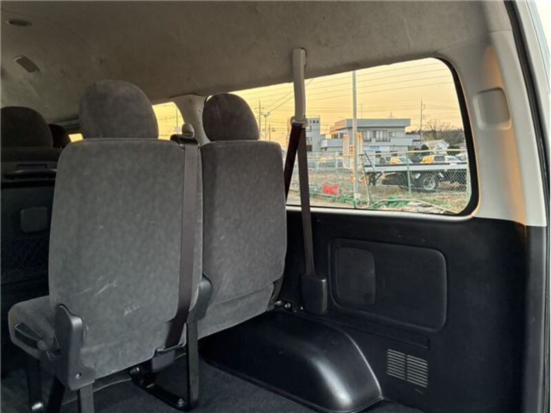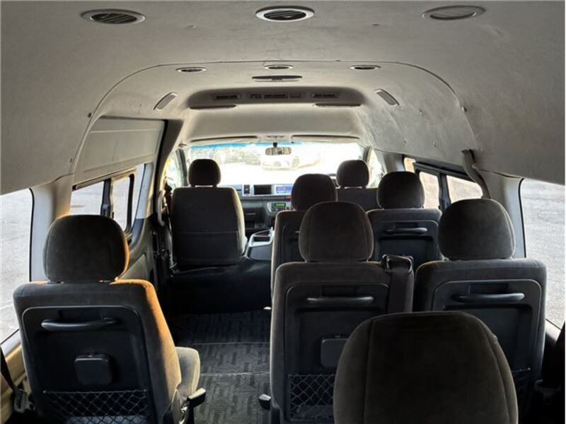This is a 10-seat Toyota van that is perfect for trips and picking up or dropping off a large number of people. The line of sight has been raised to offer a clear view and provide comfort on long journeys. The interior window areas are also large to provide a sense of openness. The height of the interior makes it easy to get in and out of the vehicle, even to and from the last row of seats. Has a spacious luggage area owing to its seats that can be raised.