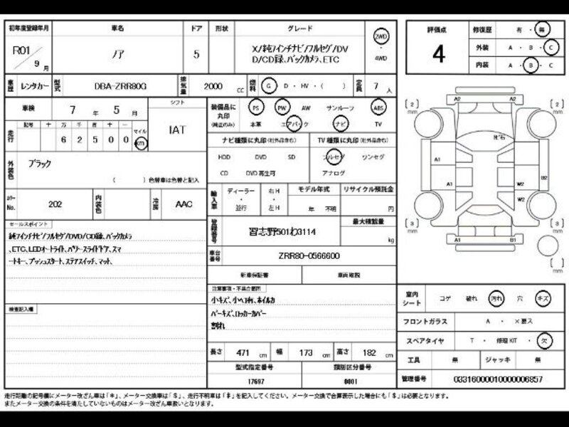 hii TOYOTA NOAH na nambari ya mfano ZRR80G imewekwa na injini ya Petroli 2,000cc na ina jumla ya mileage ya 62,500km.