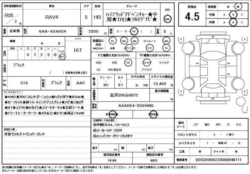 hii 2023 TOYOTA RAV4 na nambari ya mfano AXAH54 imewekwa na injini ya Umeme 2,500cc na ina jumla ya mileage ya 48,000km.