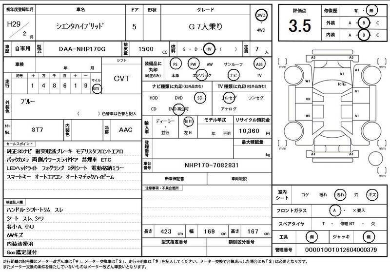 2017 huko TOYOTA SIENTA NHP170G