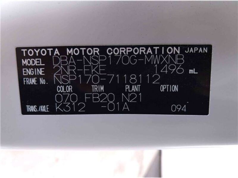 | Chassis No | NSP170-****Full Chassis No_will be shown on Invoice |