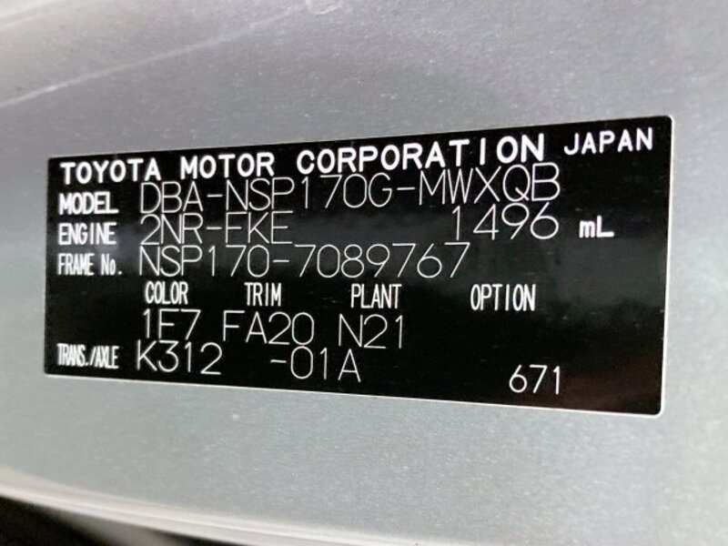 | Chassis No | NSP170G****Full Chassis No_will be shown on Invoice |