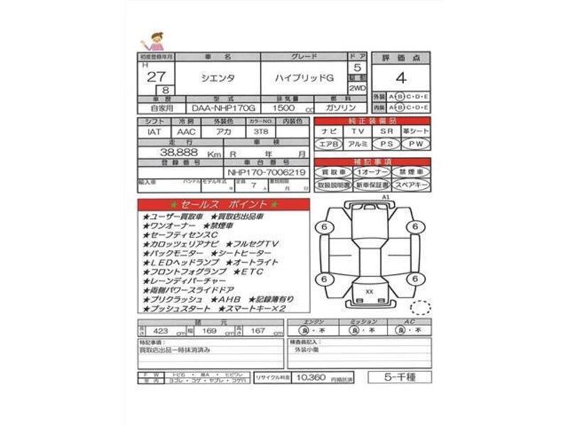 hii TOYOTA SIENTA na nambari ya mfano NHP170G imewekwa na injini ya Petroli 1,500cc na ina jumla ya mileage ya 38,888km.