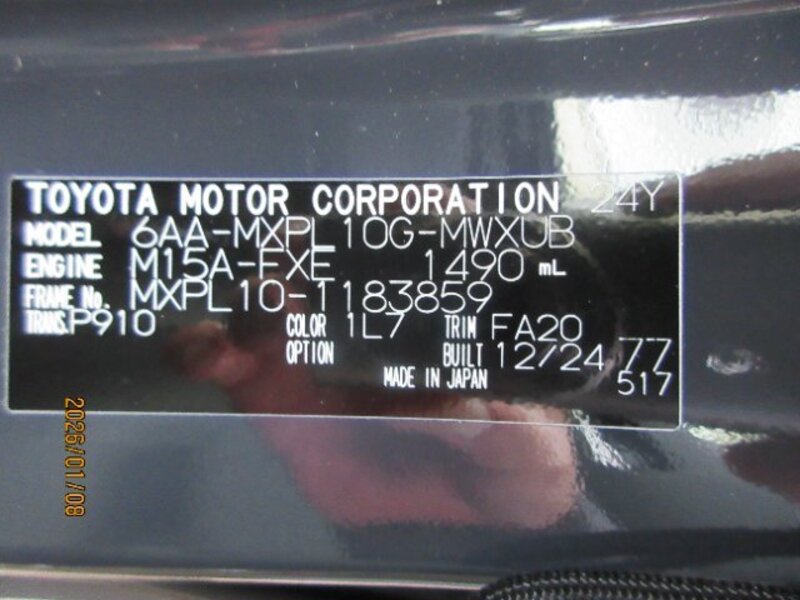 | Chassis No | MXPL10G****Full Chassis No_will be shown on Invoice |