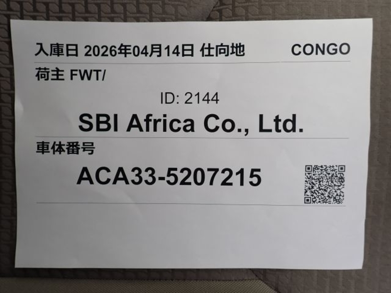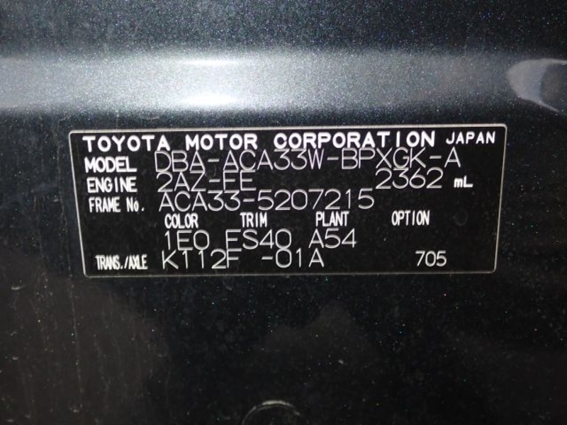 | Chassis No | ACA33-5****Full Chassis No_will be shown on Invoice |