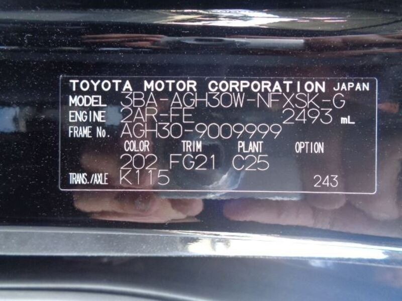 | Chassis No | AGH30-9****Full Chassis No_will be shown on Invoice |