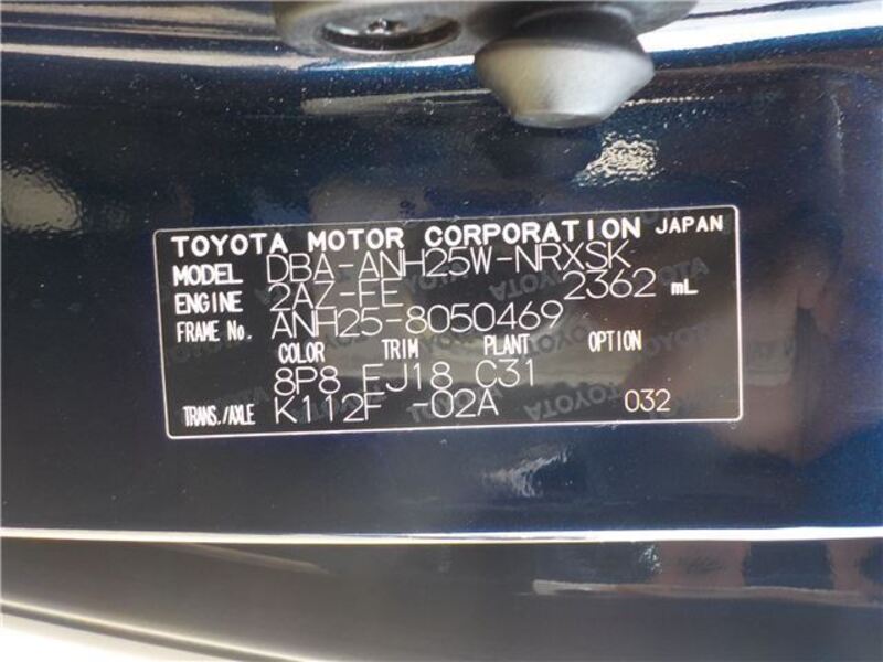 | Chassis No | ANH25-8****Full Chassis No_will be shown on Invoice |