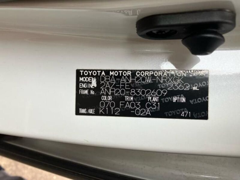 | Chassis No | ANH20-8****Full Chassis No_will be shown on Invoice |