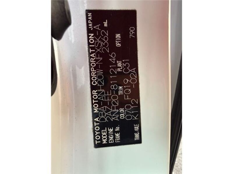 | Chassis No | ANH20-8****Full Chassis No_will be shown on Invoice |