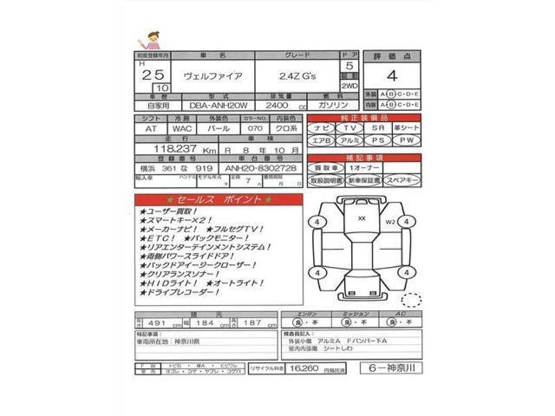 hii TOYOTA VELLFIRE na nambari ya mfano ANH20W imewekwa na injini ya Petroli 2,400cc na ina jumla ya mileage ya 118,237km.