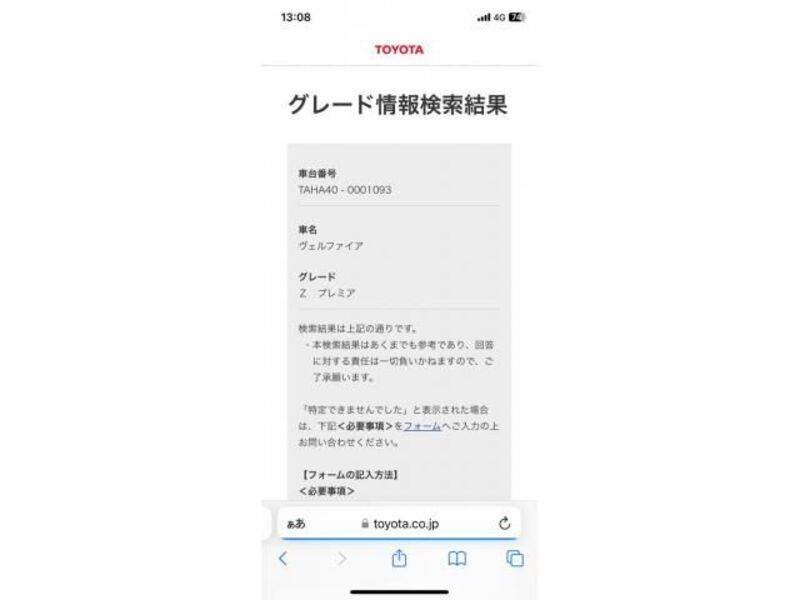 | Chassis No | TAHA40-****Full Chassis No_will be shown on Invoice |