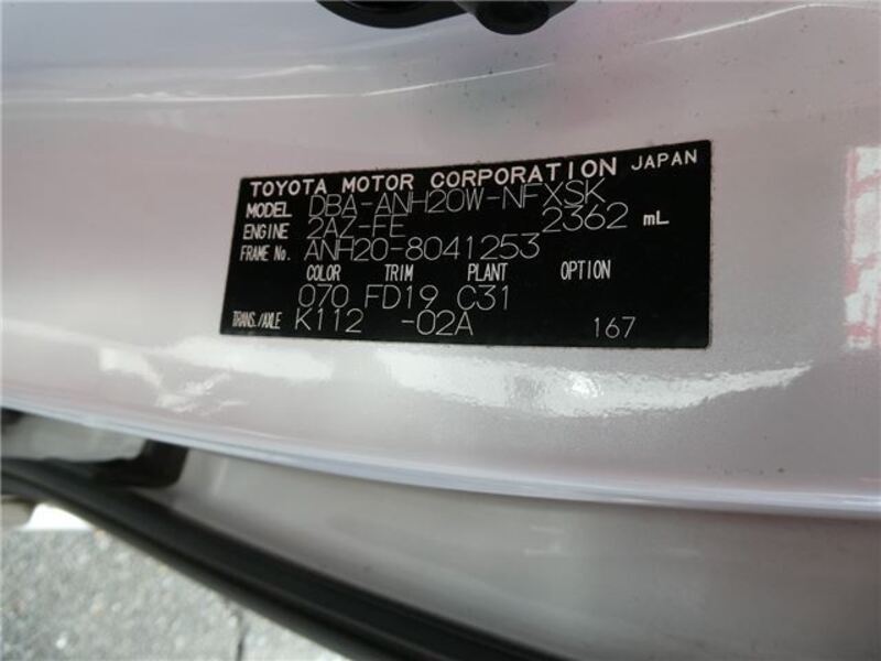 | Chassis No | ANH20-8****Full Chassis No_will be shown on Invoice |