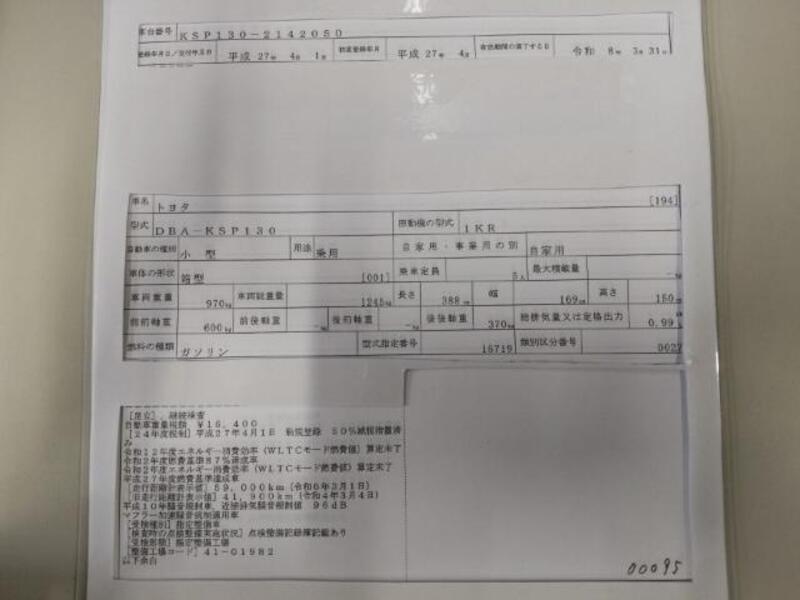 2015 huko TOYOTA VITZ DBA-KSP130
