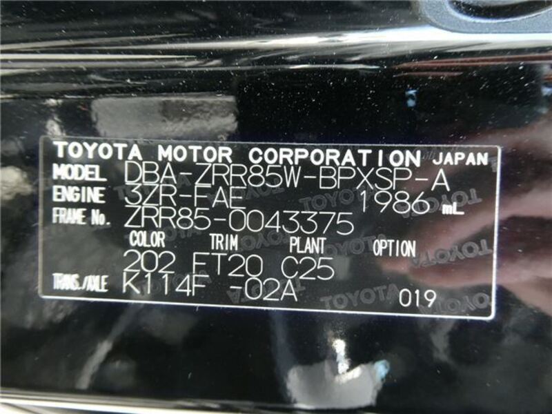 | Chassis No | ZRR85-0****Full Chassis No_will be shown on Invoice |