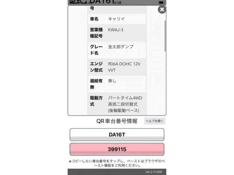 | Aina ya mwili | -- | Chasi hapana | 0514053**** | Nambari ya mfano | DBA-B11W | Mfano wa injini | -- | Usimamizi | Haki |