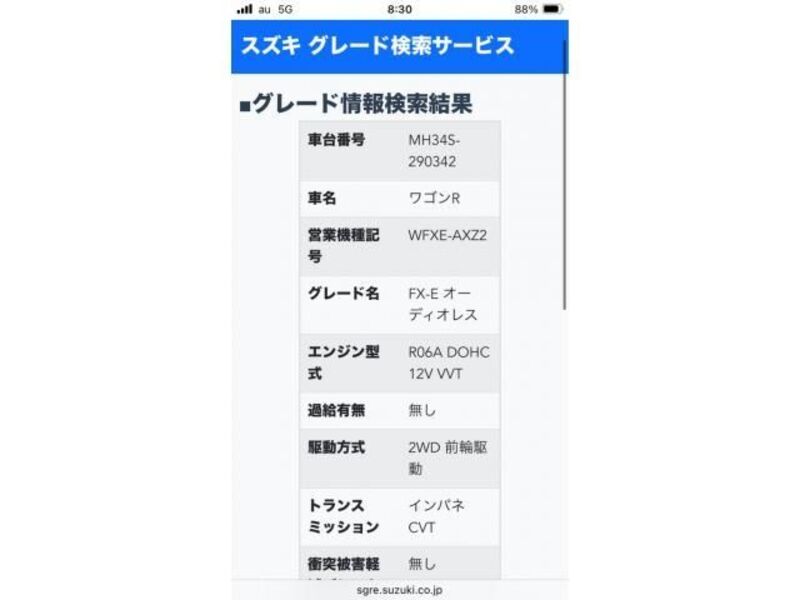 | Aina ya mwili | Hatchback | Chasi hapana | HA36S-5**** | Nambari ya mfano | DBA-HA36S | Mfano wa injini | -- | Usimamizi | Haki |