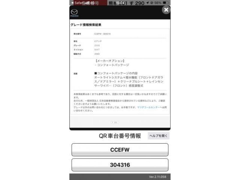 | Aina ya mwili | SUV | Chasi hapana | KE2FW-2**** | Nambari ya mfano | KE2FW | Mfano wa injini | -- | Usimamizi | -- |