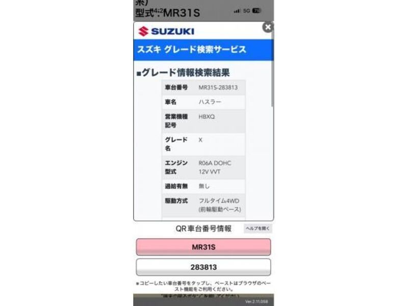 | Aina ya mwili | -- | Chasi hapana | MR31S-2**** | Nambari ya mfano | MR31S | Mfano wa injini | -- | Usimamizi | -- |