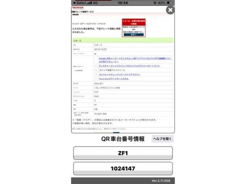 | Aina ya mwili | -- | Chasi hapana | ZF1-101**** | Nambari ya mfano | DAA-ZF1 | Mfano wa injini | -- | Usimamizi | Haki |